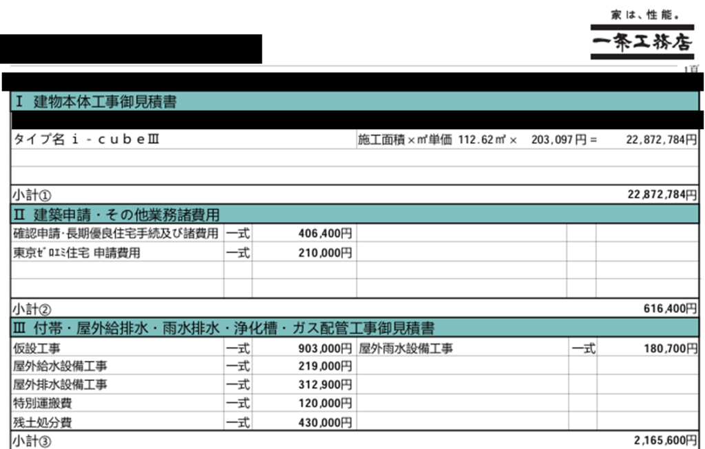 | Ⅰ建物本体工事見積書 | i-cubeⅢ 112.62㎡ | 2,287万円 |