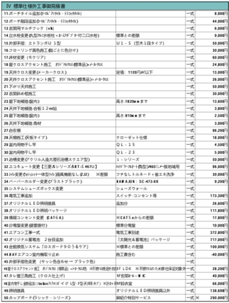 最終見積もり③(標準外工事の詳細)