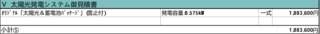 | Ⅴ 太陽光発電システム | 太陽光&蓄電池 8.575kw | 188万円 |